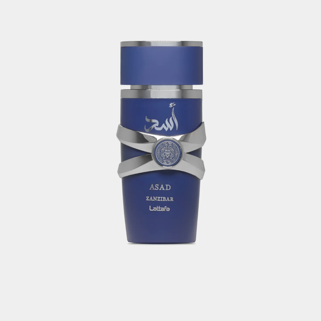 Immerse yourself in the refreshing allure of Lattafa Asad Zanzibar Eau de Parfum. Crisp lavender and coconut water blend seamlessly with the floral sophistication of iris, while vanilla and incense lend a warm, spicy depth. Encased in an elegant blue bottle, this fragrance is a statement of refinement.